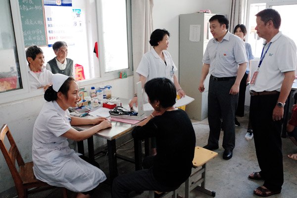 在医疗室,王章来详细了解了安置群众当前的健康状况,并鼓励医护人员,他说:“你们这是在做好事,让转移群众能量血压、量体温、能看病,群众都说你们做的好!”