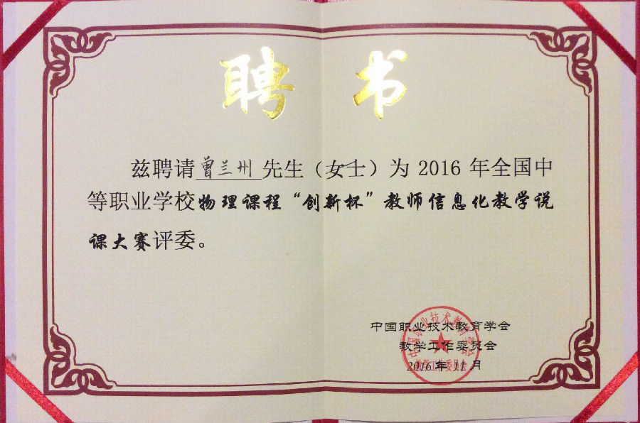 我校特级教师曾兰州应中国职业技术教育学会教学工作委员会邀请,担任此次大赛评委。 ( 刘飞 )