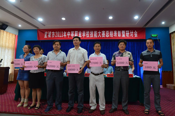 在总结表彰大会上,胡旭明代表市信息工程学校致欢迎辞,郑永新对2013年全市职业学校技能大赛以及我市参加国家、省技能大赛情况进行了全面总结并对在全国、全省职业院校技能大赛(中职组)比赛中7所获奖学校给予表彰和奖励;高利兵副科长对2014年大赛进行了安排部署。宣城市工业学校、安徽材料工程学校、安徽省徽州学校、宣城市信息工程学校在会上作了交流发言。