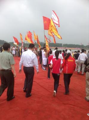 6月9日,宣州区第五届龙舟赛顺利结束,宣城市信息工程学校的10名担任礼仪服务的志愿者以饱满的热情和专业的服务,交上了一份完美的答卷。 当天早上6:00,志愿者们乘车来到比赛现场。露天的赛场上天气微寒,志愿者们身着单薄的衣衫为赛事服务。她们的身影成为赛场上一道亮丽的风景。(校团委)