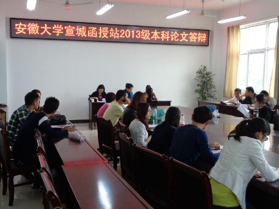 5月16日,安徽大学宣城函授站2013级本科论文答辩工作在宣城市信息工程学校举行。22名同学参加了答辩。