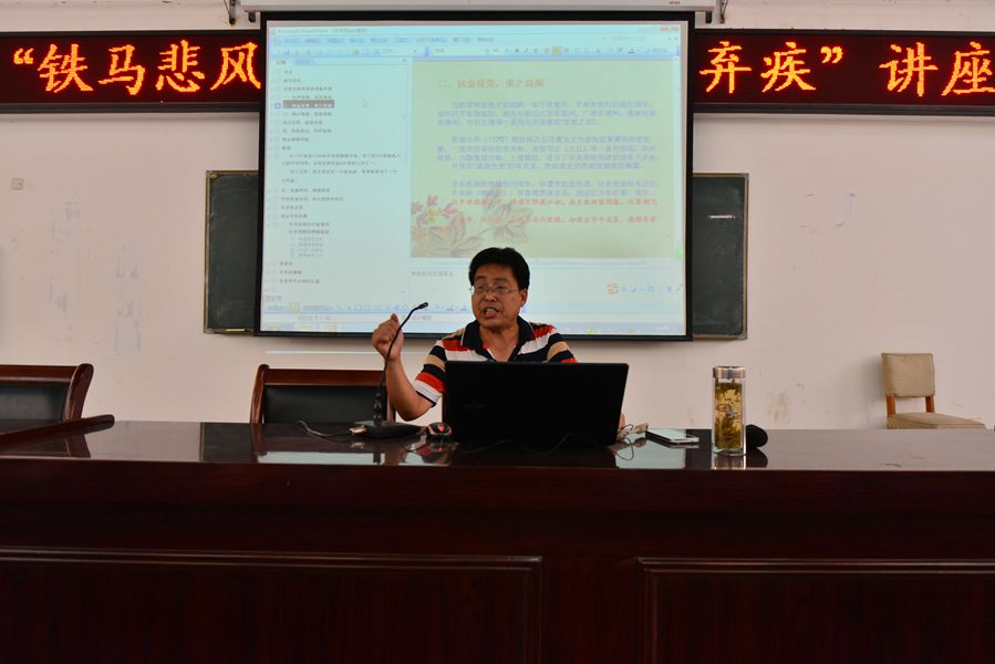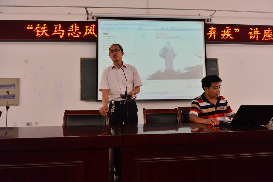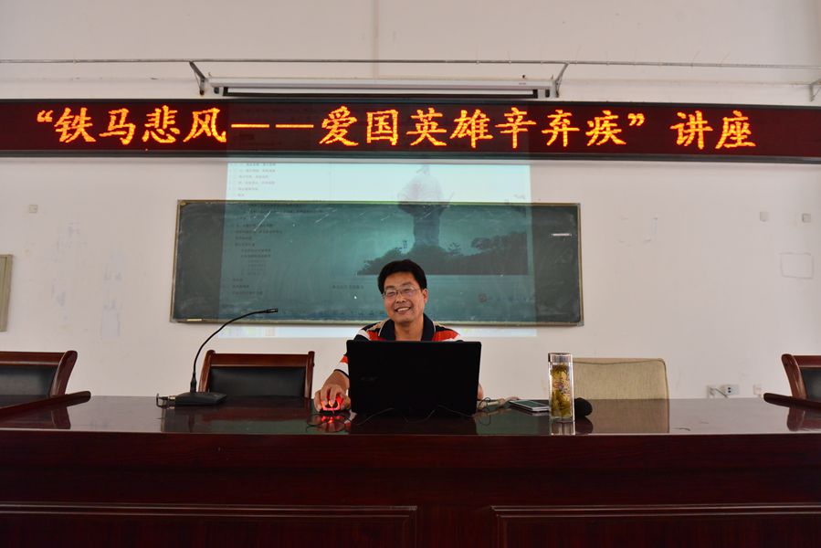 6月11日下午,“阅读经典,共建书香校园”系列讲座在校东阶梯教室正式拉开帷幕。学校邀请了德高望重的程放鸣老师作题为“铁马悲风,爱国英雄辛弃疾”的首场讲座,教务处裴鹏飞主任主持了此次讲座,学校四个系部共八个代表班级聆听了此次讲座。 程放鸣老师用其饱含真情,富有感染,却又通俗易懂的语言,带我们纵观了辛弃疾的一生。从幼年丧父却有着良好的家族传承,家庭教育,从小就有强烈的爱国情怀,到青年抗金起义,投归南宋,空有抗金良策却被束之高阁的不得志,再到中年在岗位上虽政绩卓著,雄才稍展,却被频繁调动,武略难施展,最后老年生活归于平淡,但依旧难平内心的豪情,只能寄情于诗词,狂歌悲风,栏杆拍遍,最终,北望神州,抱恨而终。颠覆了我们以往对辛弃疾仅仅是一个伟大爱国词人的认识,更是一代良帅将种,铁马悲风的爱国大英雄。