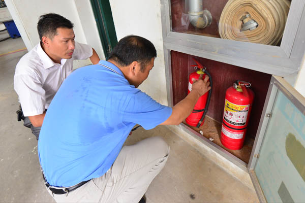 检查组还深入教室、实训室、食堂及学生公寓,重点检查了学校安全及卫生工作:看看卫生许可证,餐饮人员健康证,学生寝室内务及卫生状况;仔细查看消防器材的有效使用期限,能否方便使用等。