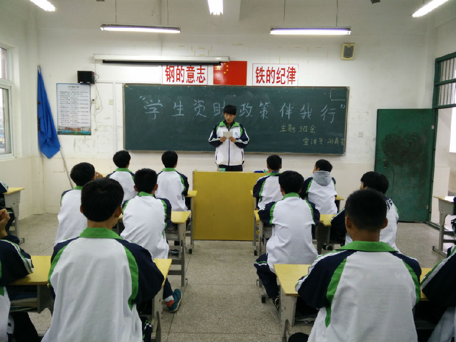 11月16日,根据活动安排,全校各班级利用班会课时间按照学校所印发的资助政策宣传材料,逐一对本班学生进行讲解,重点是对国家免学费、国家助学金和校内资助的申请、认定、发放以及监督管理等流程进行详细解读,同时要求各班推选一名学生担任资助政策宣讲员。